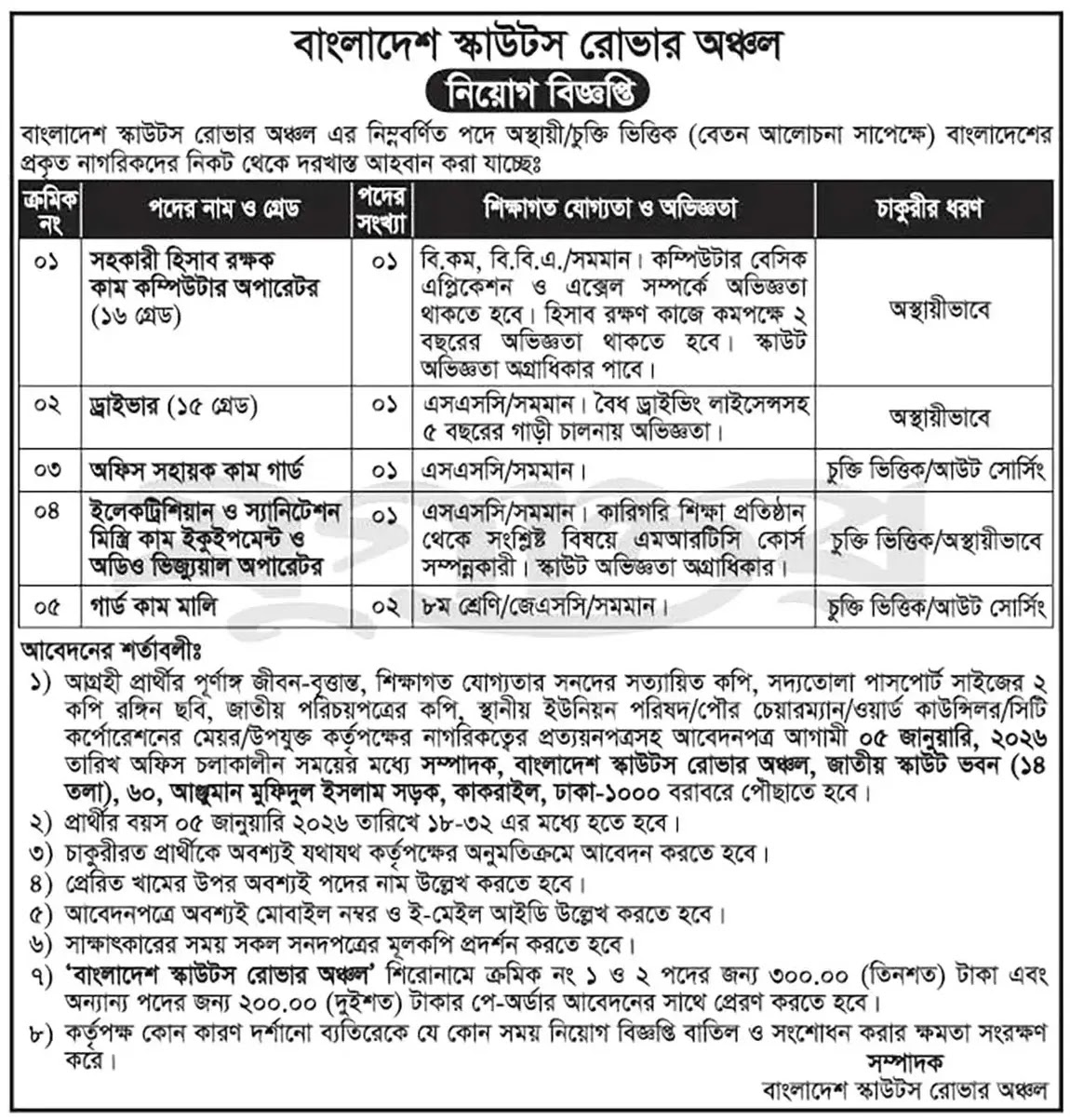 নিয়োগ বিজ্ঞপ্তির নামBangladesh Scouts Job Circular 2026