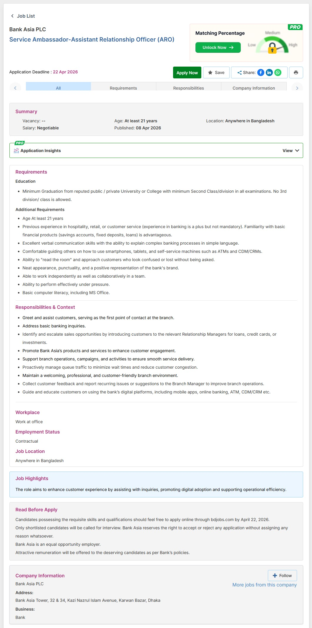 নিয়োগকারী সংস্থাBank Asia Limited