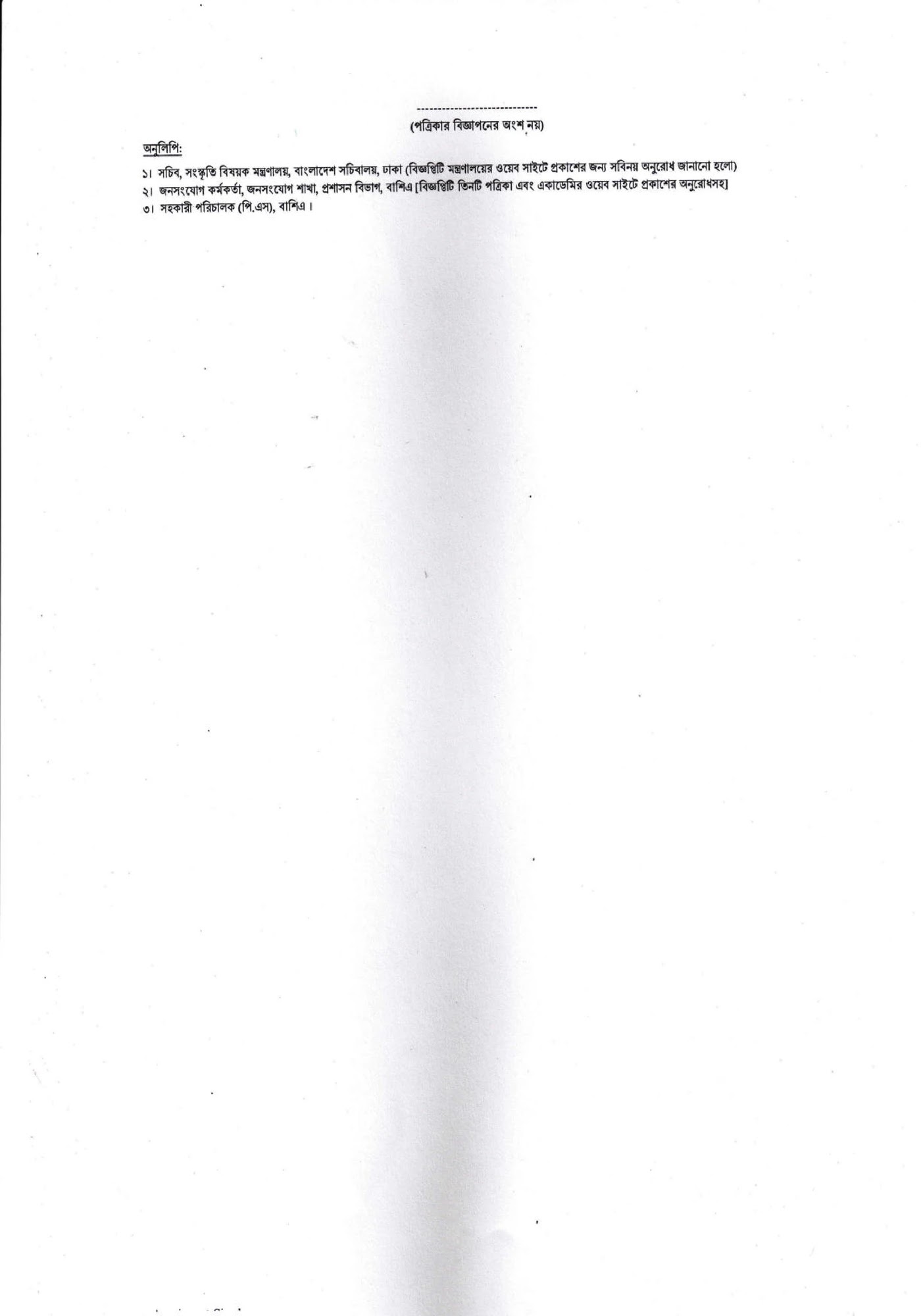 বাংলাদেশ শিল্পকলা একাডেমি নিয়োগ বিজ্ঞপ্তি ২০২৬ এর পিডিএফ / ইমেজ