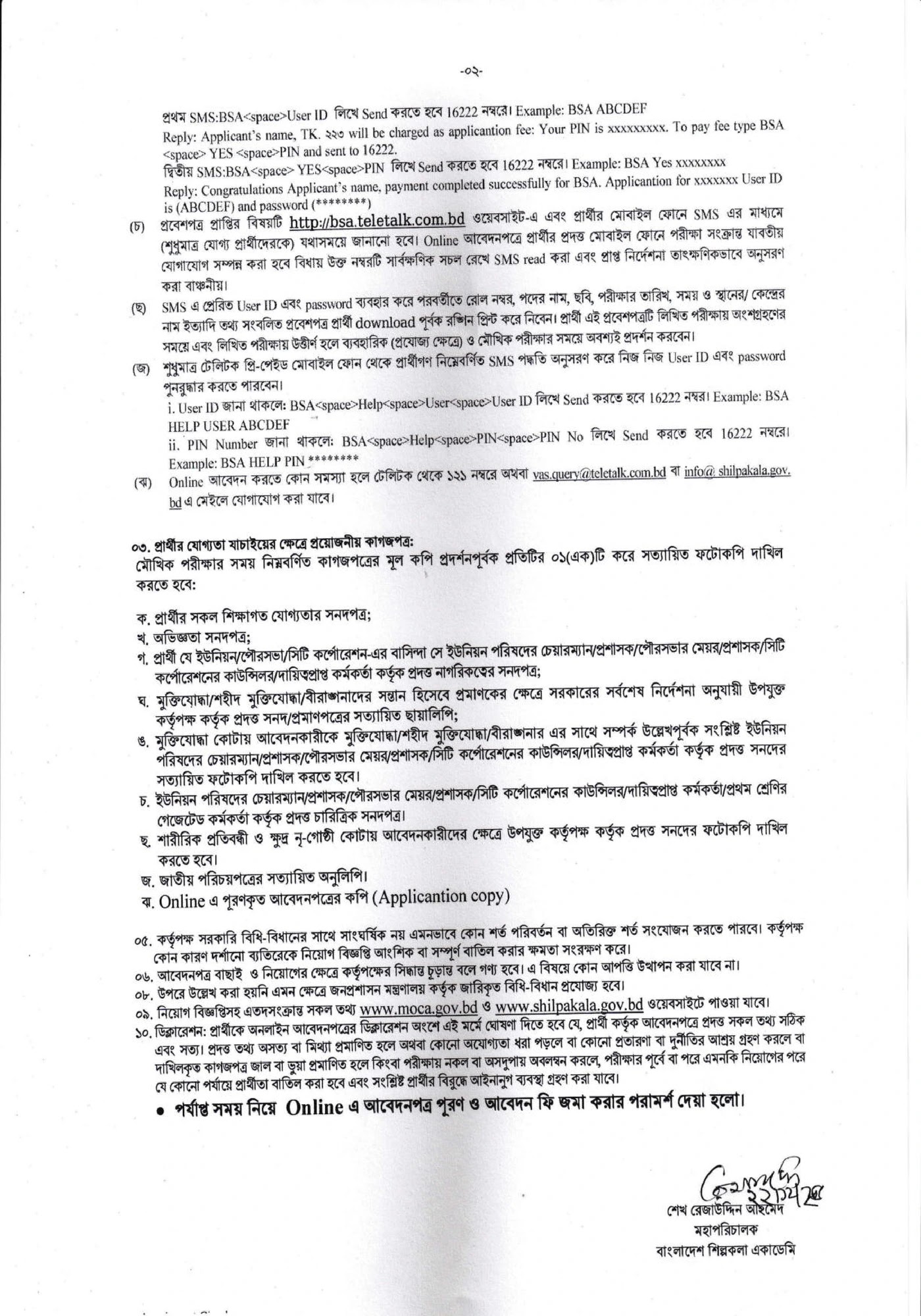 নিয়োগ বিজ্ঞপ্তিতে আবেদনের নিয়মাবলী ও শর্তাবলী