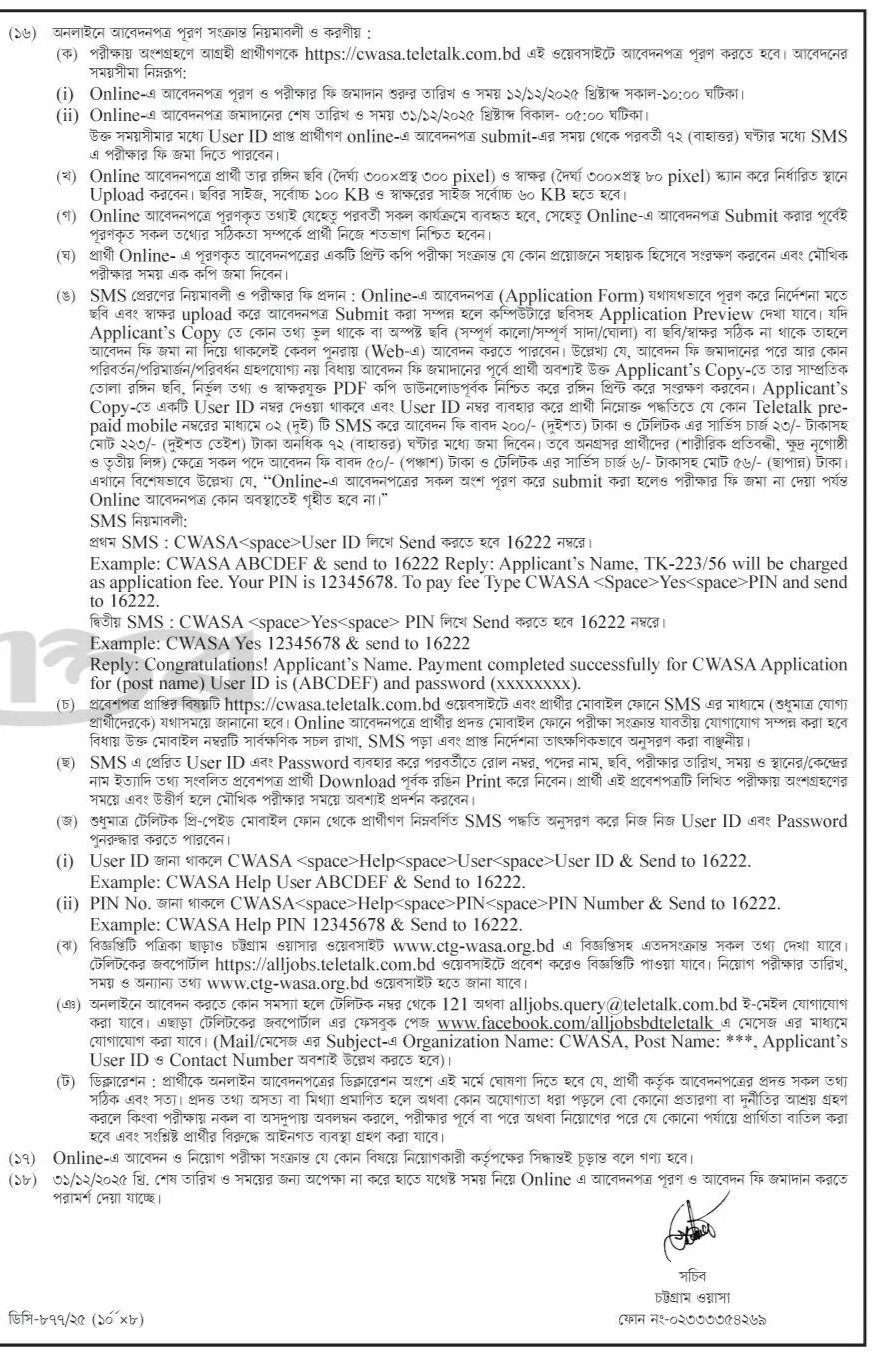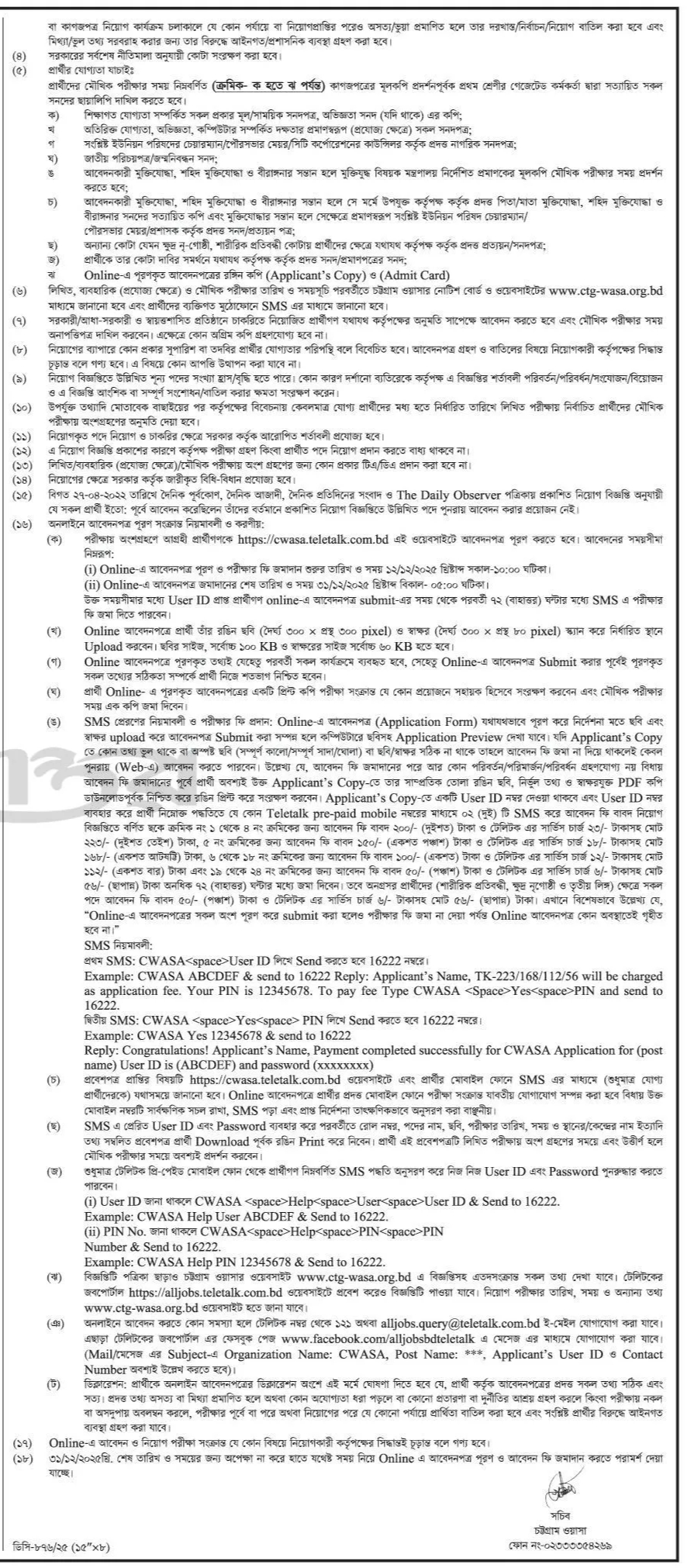 | অনলাইন আবেদন লিংক | https://cwasa.teletalk.com.bd |