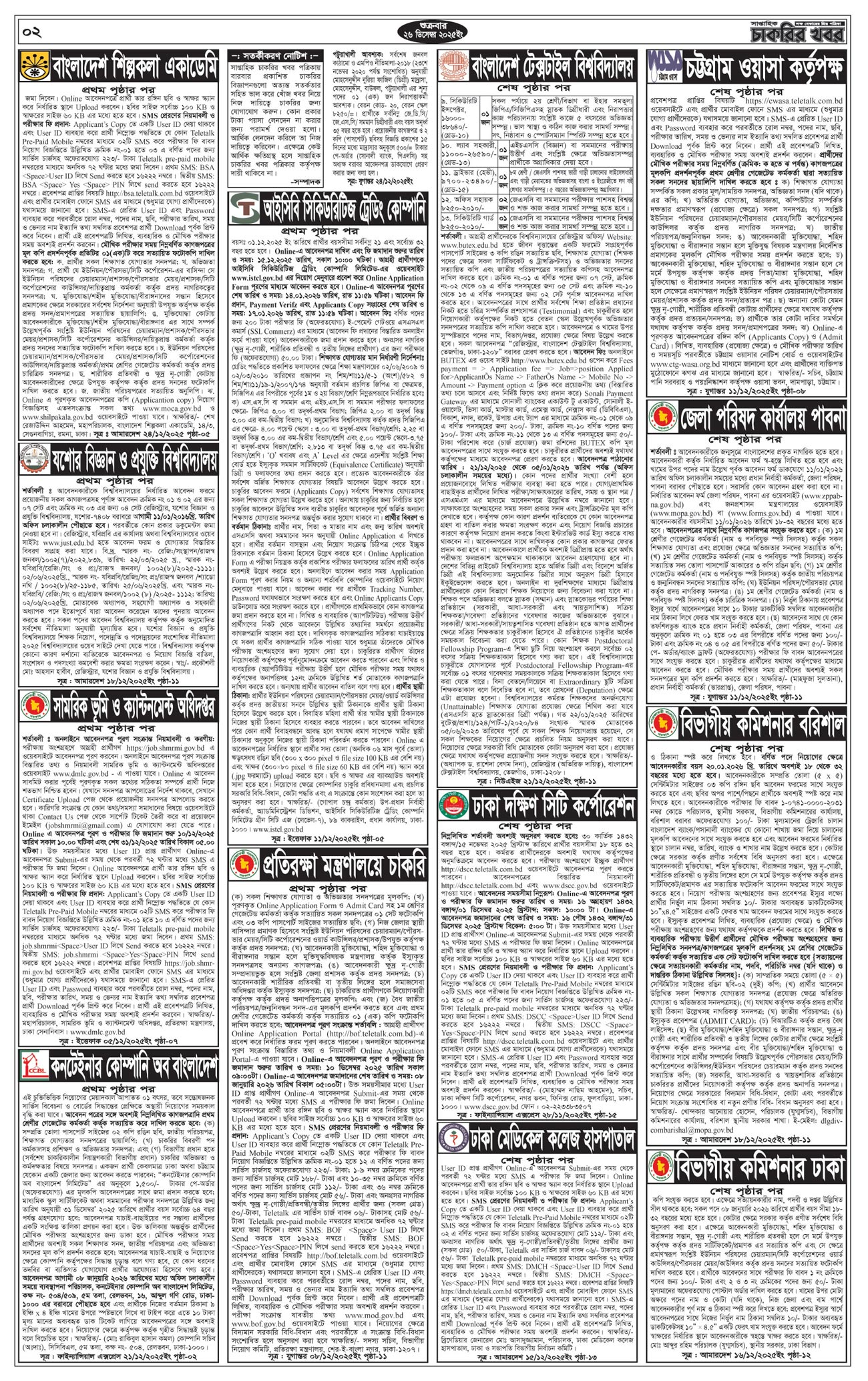 সাপ্তাহিক চাকরির খবর পত্রিকা ২৬ ডিসেম্বর ২০২৫