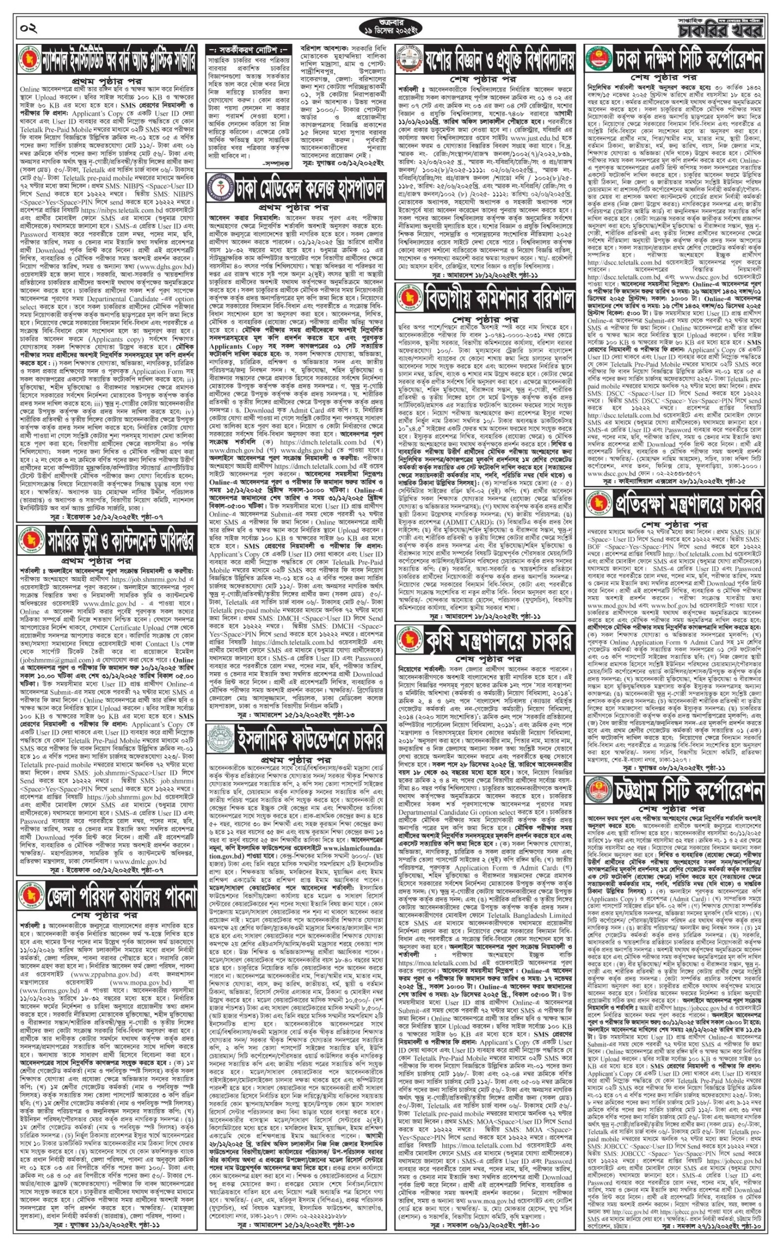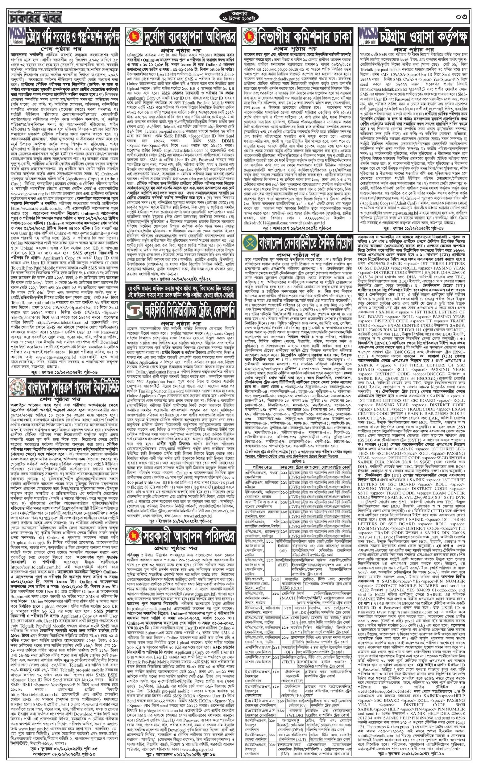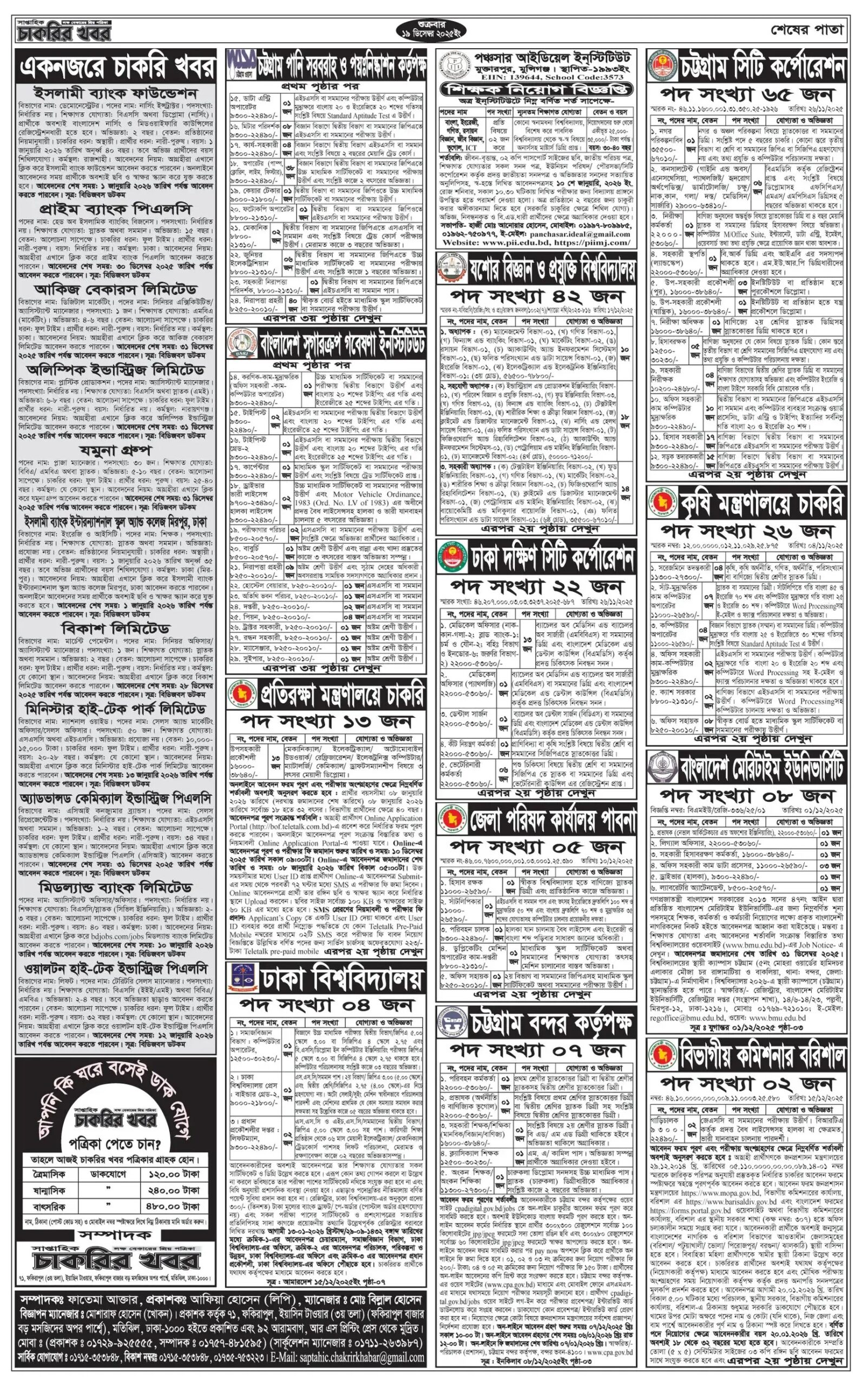 সাপ্তাহিক চাকরির খবর পত্রিকা ১৯ ডিসেম্বর ২০২৫