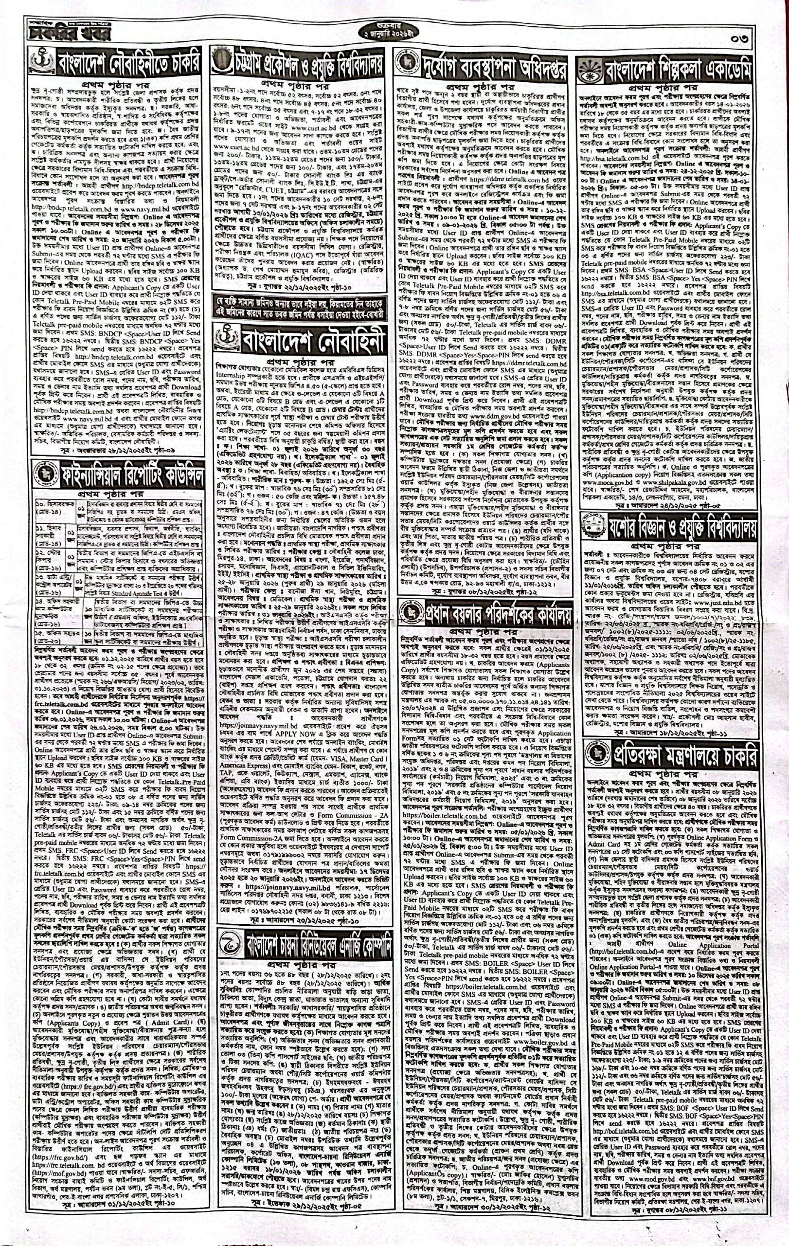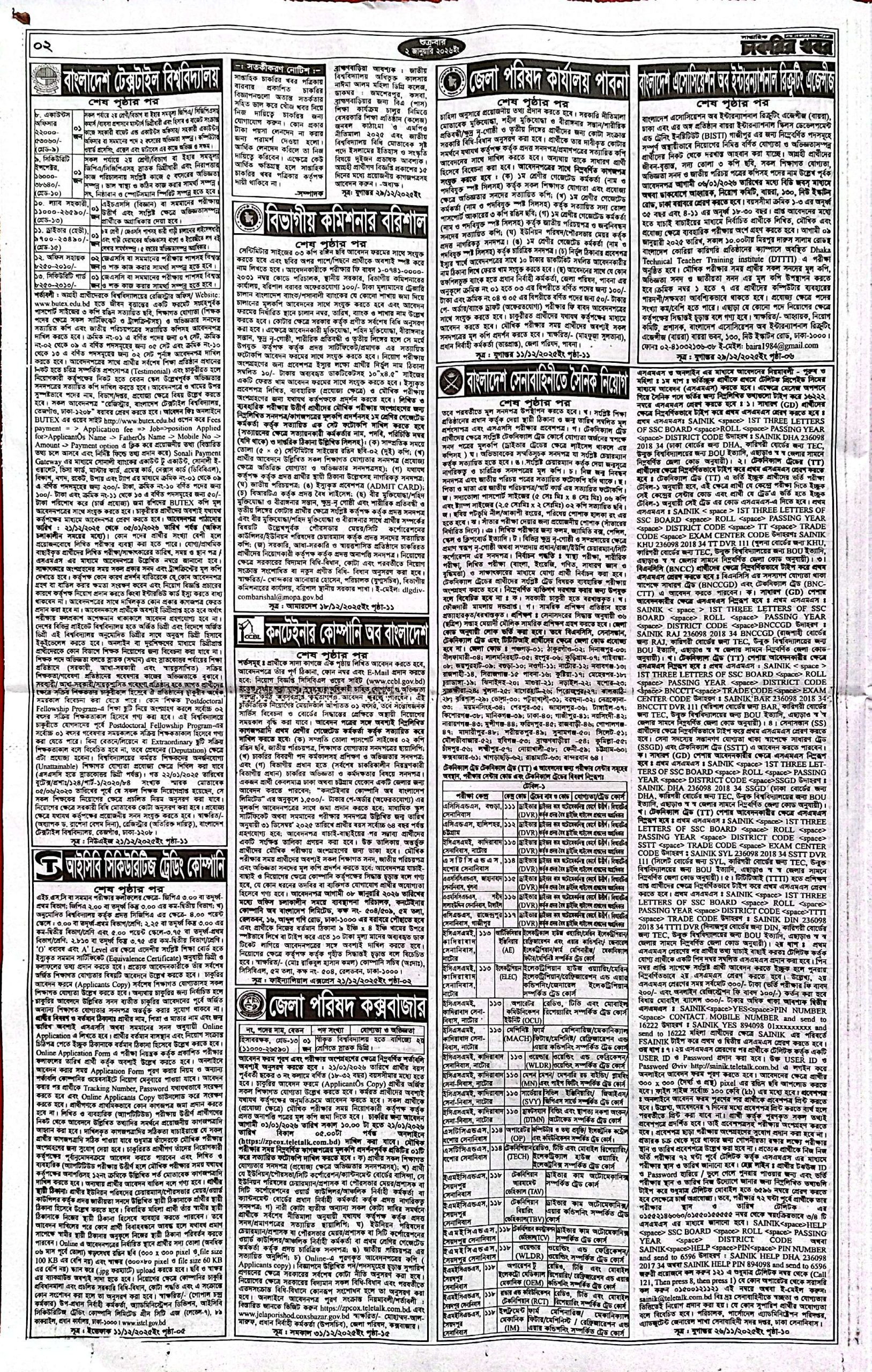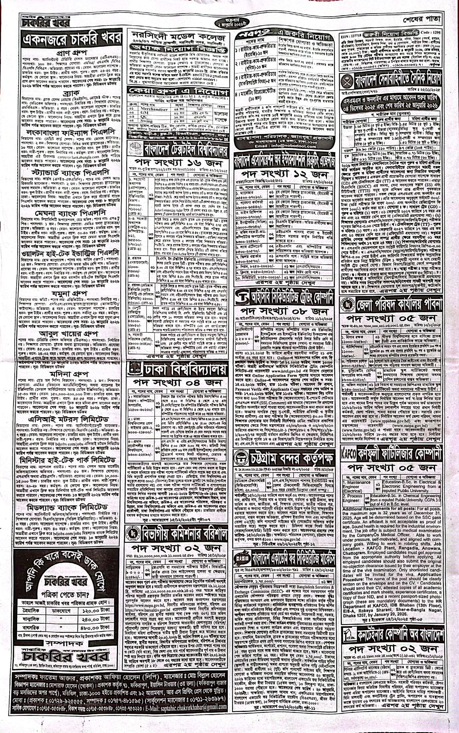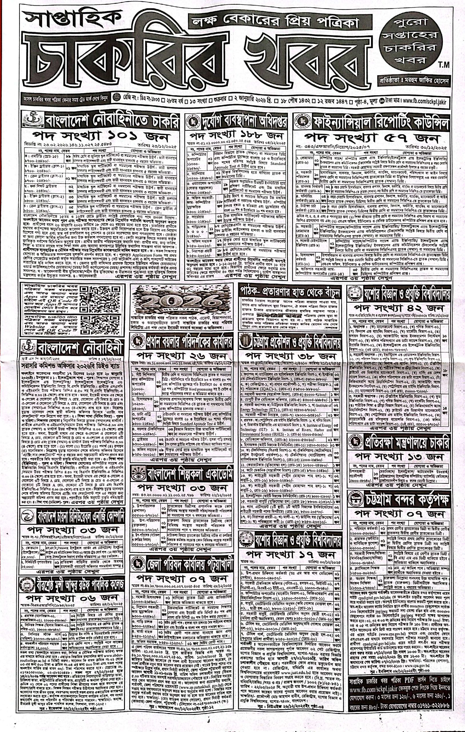 সাপ্তাহিক চাকরির খবর পত্রিকা ২ জানুয়ারি ২০২৬