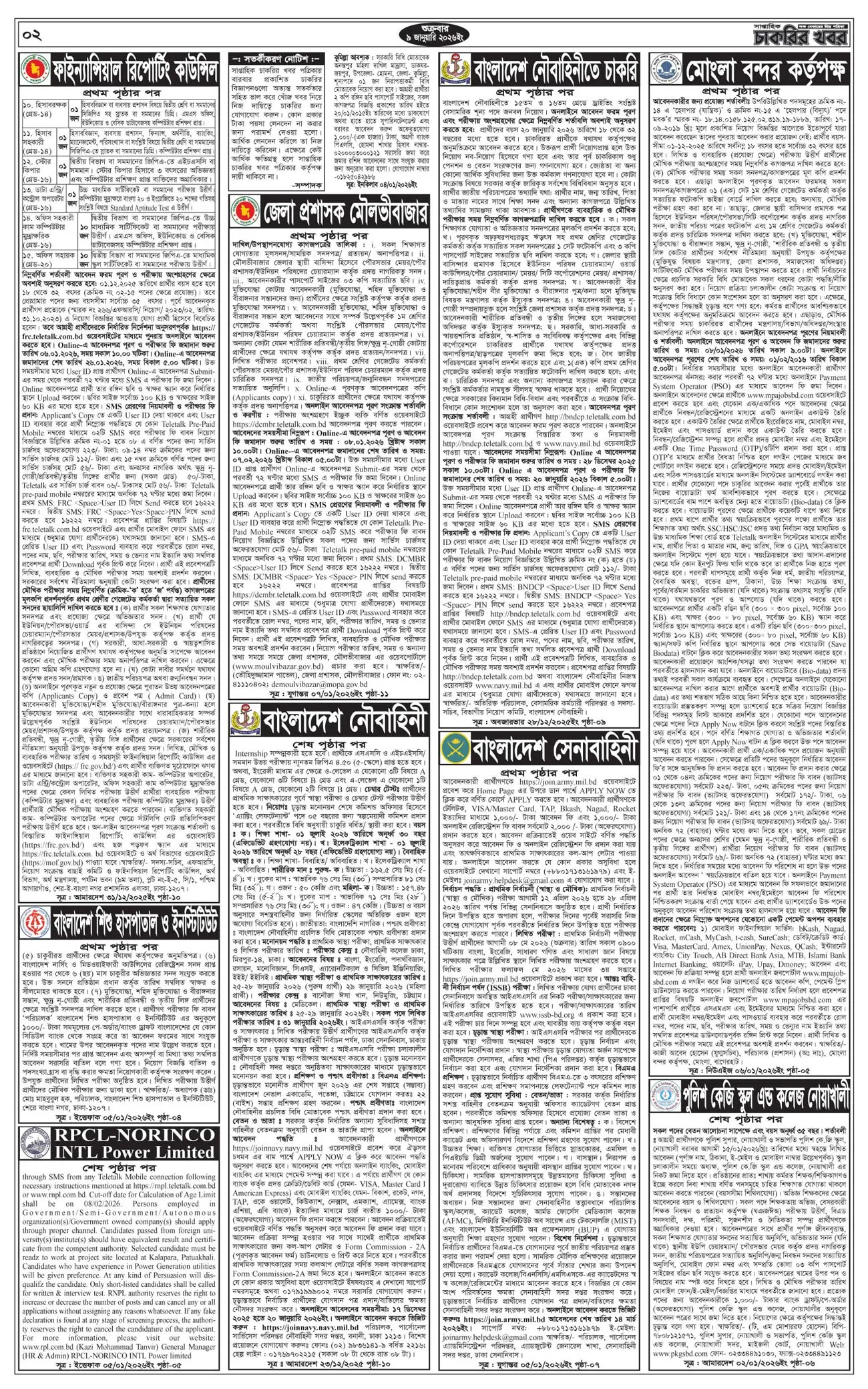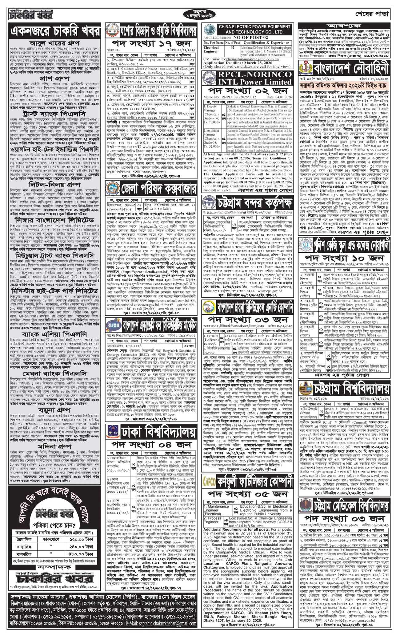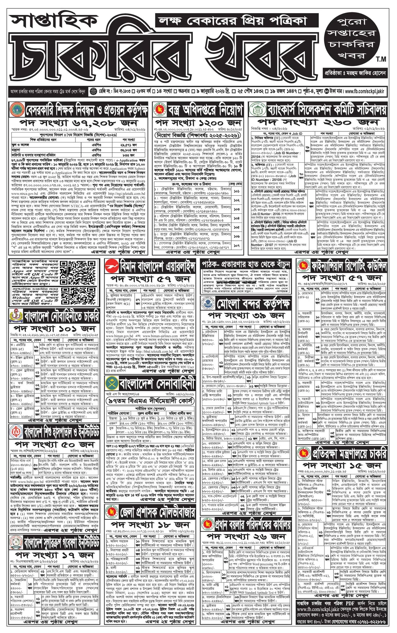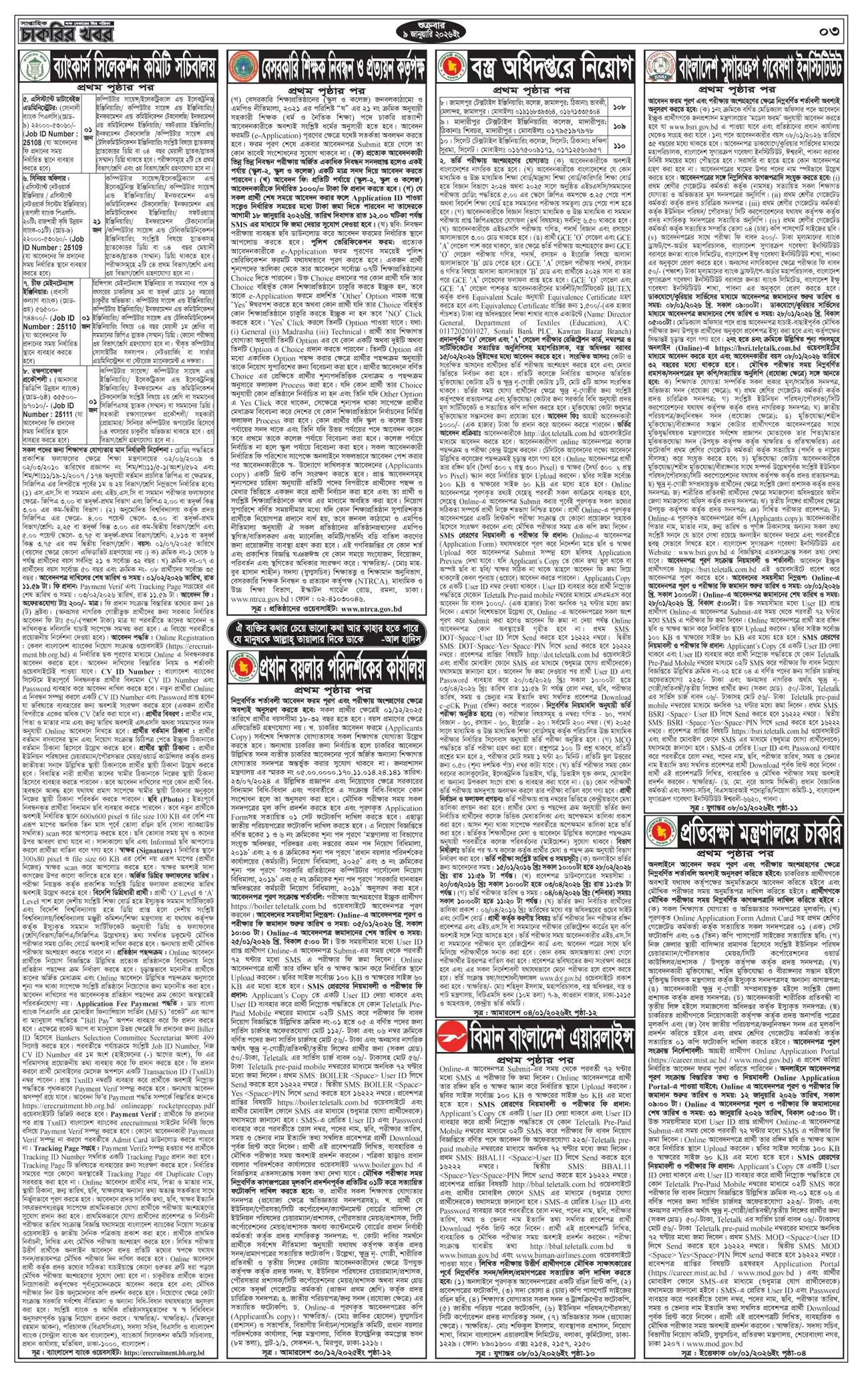 সাপ্তাহিক চাকরির খবর পত্রিকা ৯ জানুয়ারি ২০২৬