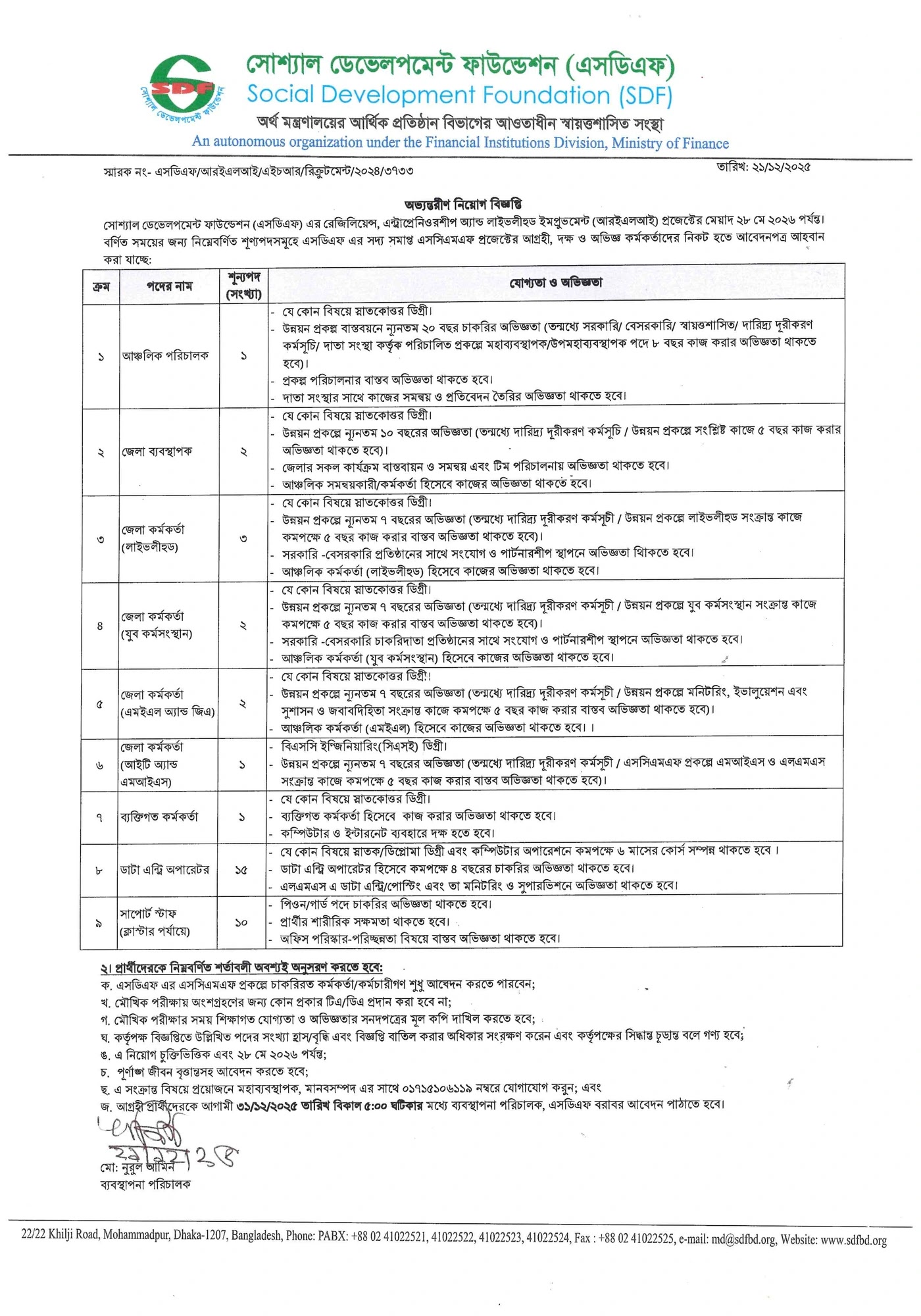 নিয়োগকারী সংস্থাসোশ্যাল ডেভেলপমেন্ট ফাউন্ডেশন এসডিএফ এনজিও