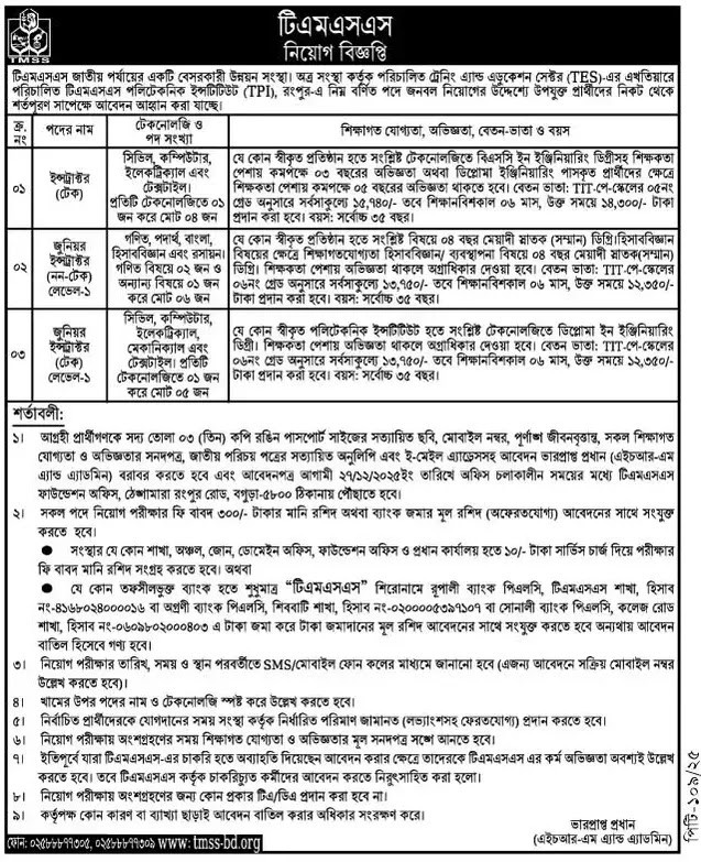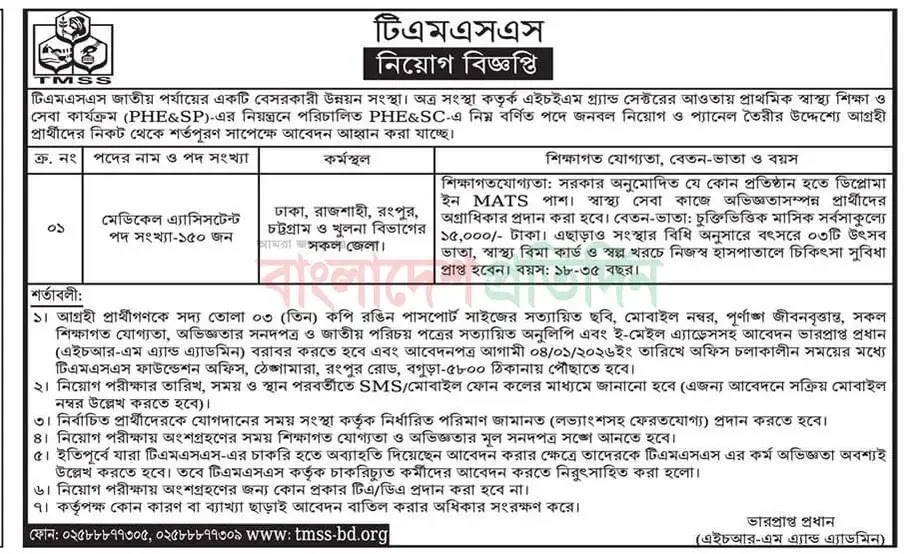 | নিয়োগকারী সংস্থা | টিএমএসএস এনজিও (TMSS) |